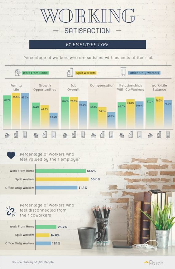 Angestellte, die im Homeoffice arbeiten, sind eher zufrieden mit ihrem Job als reine Büroangestellte, aber sie fühlen sich auch eher von ihren Mitarbeitern abgeschnitten, so eine aktuelle Studie von Porch.