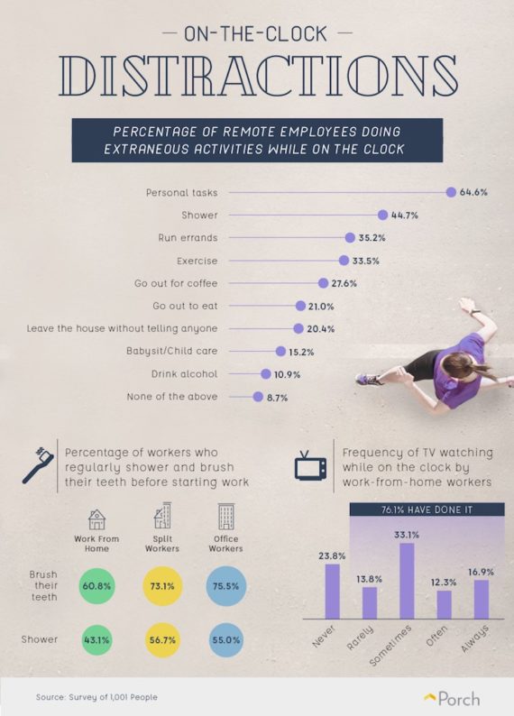 Weitere Details und Grafiken finden Sie in der Studie „Working from Home – exploring the differences between remote and office employees“ von Porch.