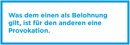 Der Korrumpierungseffekt steht für die Verdrängung intrinsischer durch extrinsische Motive. Zunächst kommt es häufig zu einer Steigerung des bestärkten Verhaltens – fällt der äußere Anreiz jedoch weg, sinkt das ursprünglich freiwillig gezeigte Was dem einen als Belohnung gilt, ist für den anderen eine Provokation. 39 Verhalten unter das Ausgangsniveau zurück. Wird für eine bislang gerne wahrgenommene Tätigkeit plötzlich eine Belohnung angeboten, unterliegt sie einer kognitiven Neubewertung und wird künftig weniger gerne ausgeführt. Vieles hängt aber von der individuellen Wahrnehmung des externen Reizes ab. Wird das Autonomieerleben gestärkt bzw. wird eine Belohnung als nicht kontrollierend wahrgenommen, kann die intrinsische Motivation gesteigert werden. Gleiches gilt, wenn die Belohnung auch als Anerkennung eigener Kompetenz wahrgenommen wird. Führt aber eine Belohnung zu einer Reduzierung eigenen Kompetenzerlebens oder wird sie als kontrollierend erlebt, kommt es zum Korrumpierungseffekt. Daraus folgt: Motivierung kann auch demotivieren.